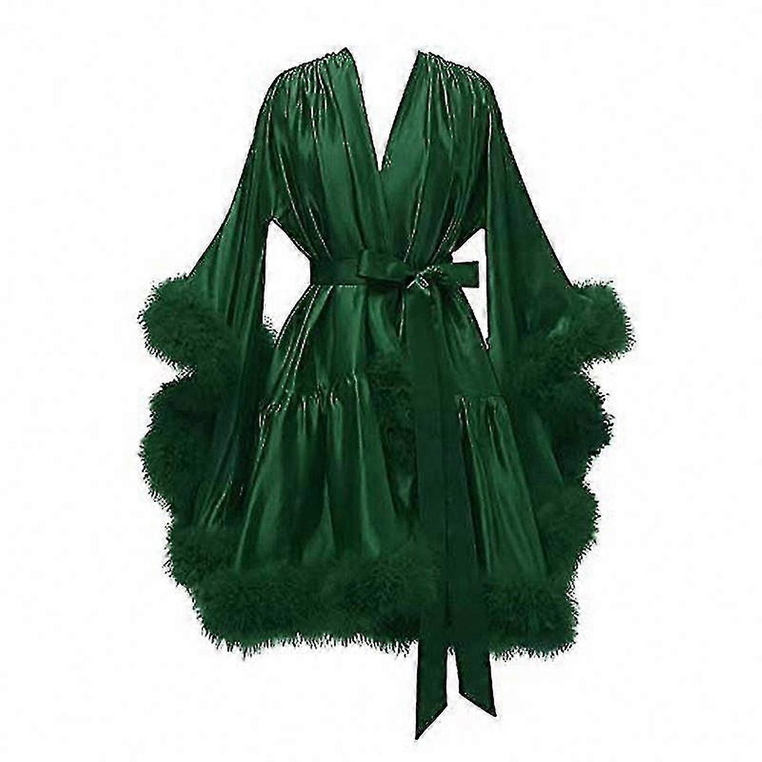 Women's Sexy Feather Robe, Short Chiffon Illusion Sleepwear Nightgown