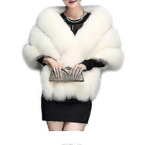 Women's Luxury Party Faux Fox Fur Long Shawl Cape Winter