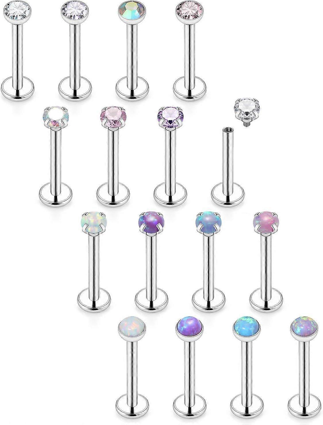 Packaged with Care: Packs each jewelry with a velvet gift pouch, adding an extra touch of elegance to your purchase. MATERIAL: Made of 316L Surgical Steel, Hypoallergenic, Free of Lead and Nickel. Highly Polished, Smooth Surface, Comfortable for Long Time Wear. Wearable onBody Piercing Jewelry Can be Used as Lip Rings, Medusa Piercing Jewelry, Labret Jewelry, Monroe Lip Rings, Nose Rings, Nose Studs, Cartilage Earrings, Ear Studs, Tragus Earrings, Helix Piercing Jewelry, Forward Rook Earrings, Conch Piercing, Daith Piercing For Women and So On. It's The Best Gift for Birthday, Christmas Day, Anniversary Day, Valentine's Day and More. Order includes16Pcs Cubic Zircon Opal Lip Rings, Four Claws Design Firm and Reliable, Easy to Put Off and Put On. Perfect sizeRod Thickness: 16G=1.2mm, Length=8mmTop CZ Size2mm.
