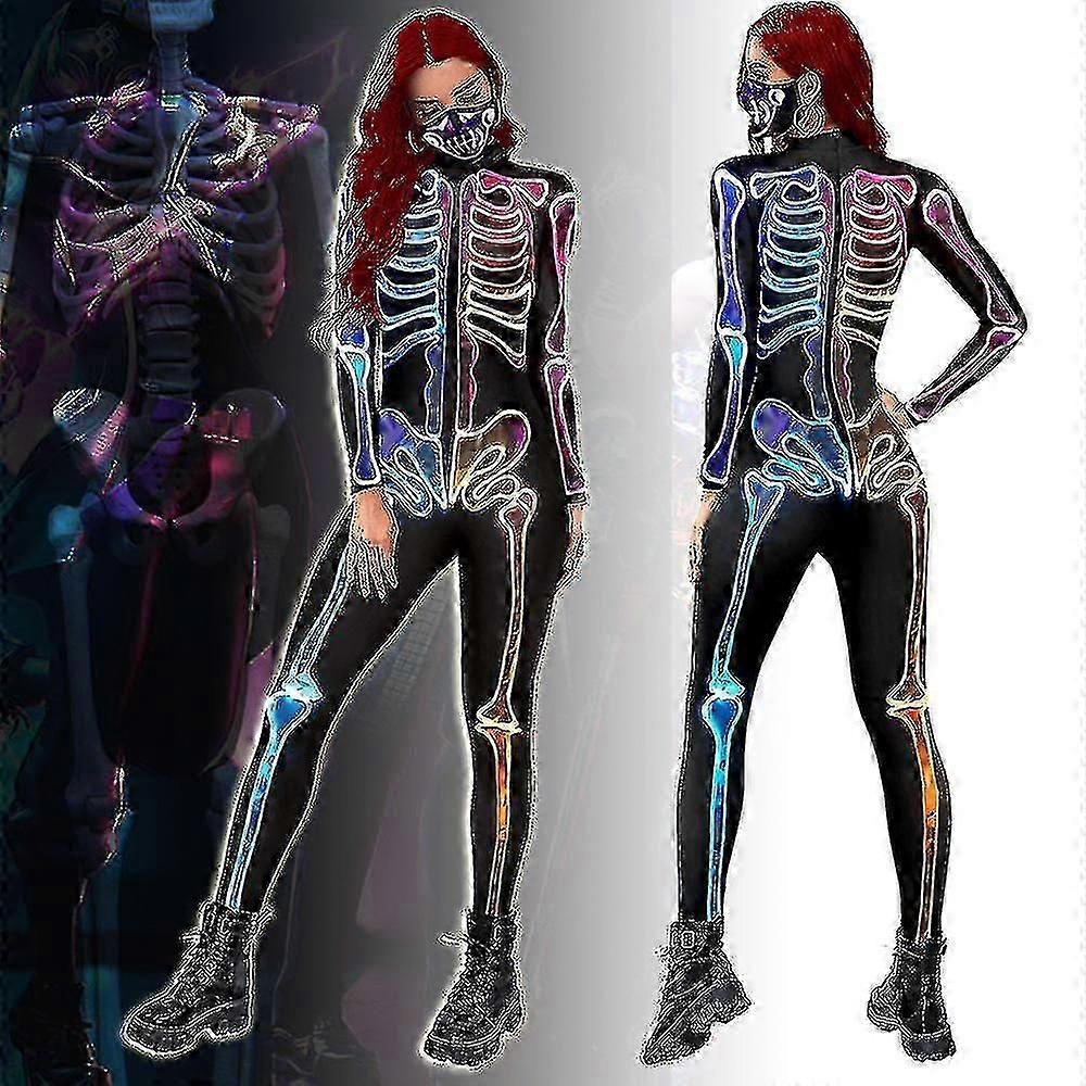 Women's 3D Skeleton Halloween Costume Bodysuit Role Play Full Body Tights