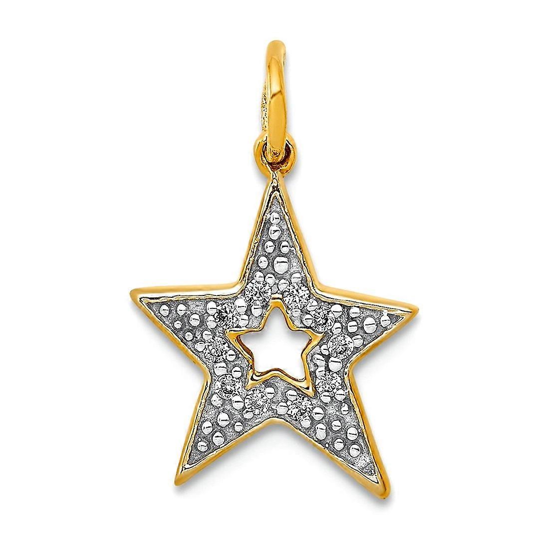 10k Solid Yellow Gold Diamond Star Charm Pendant Necklace for Women - .8 Grams .05 dwt
