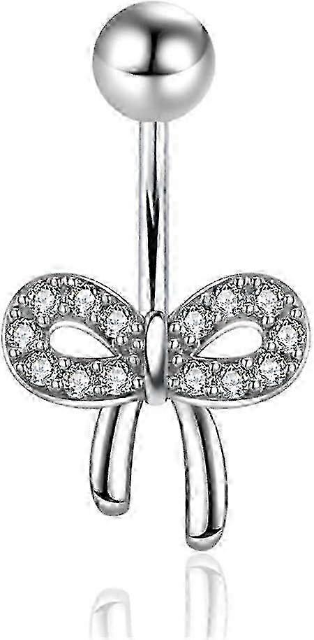 14G Rhinestone Bow Belly Button Rings for Women 316L Surgical Steel Bowknot Navel Piercing
