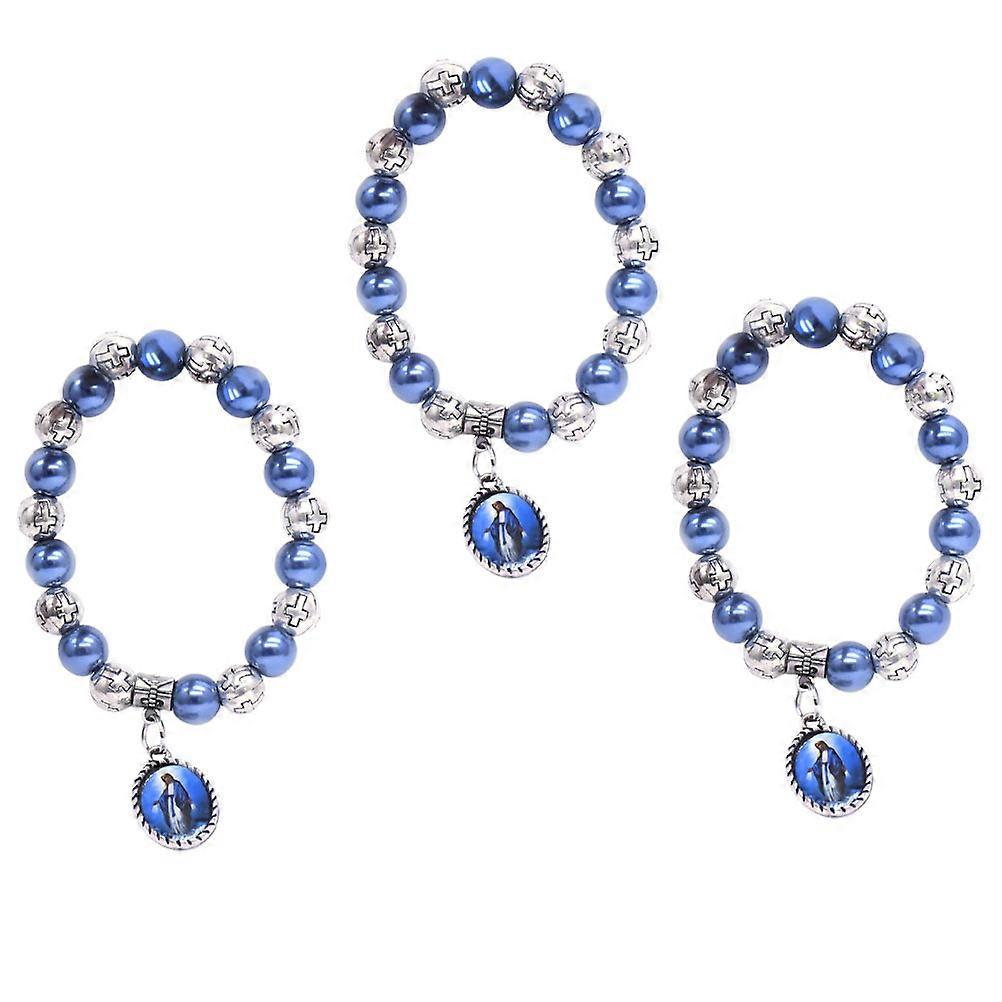 3Pcs Pendant Design Blue Pearl Cross Bracelets for Women