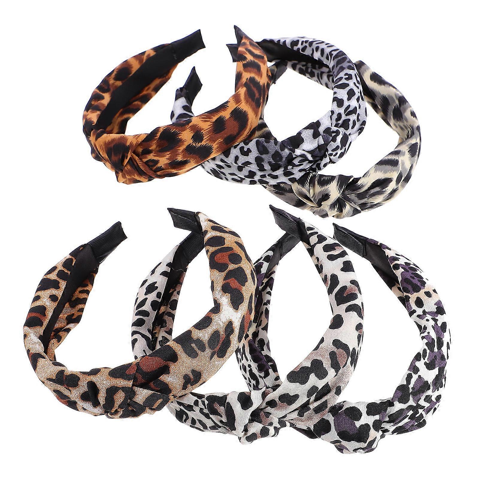 6PCS Leopard Print Wide Headbands for Women, Cross Knot Fabric Hairbands, Lightweight Comfortable Hair Accessories for Daily Wear & Special Occasions