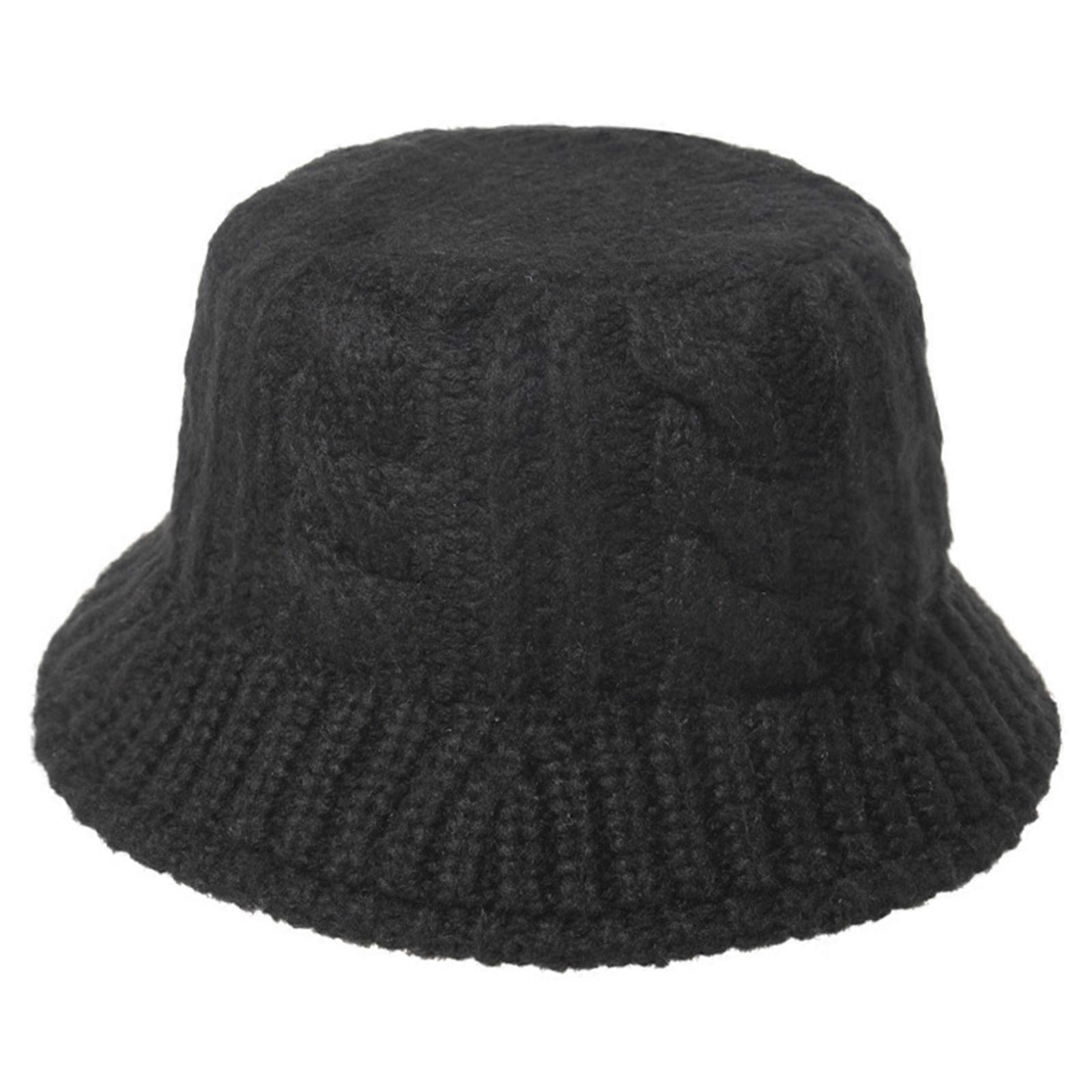 Women Men Chunky Cable Knit Hip Hop Bucket Hat Autumn Twist Striped Crochet Solid Color Sunscreen Windproof Warm Packable Fisherman Cap Black