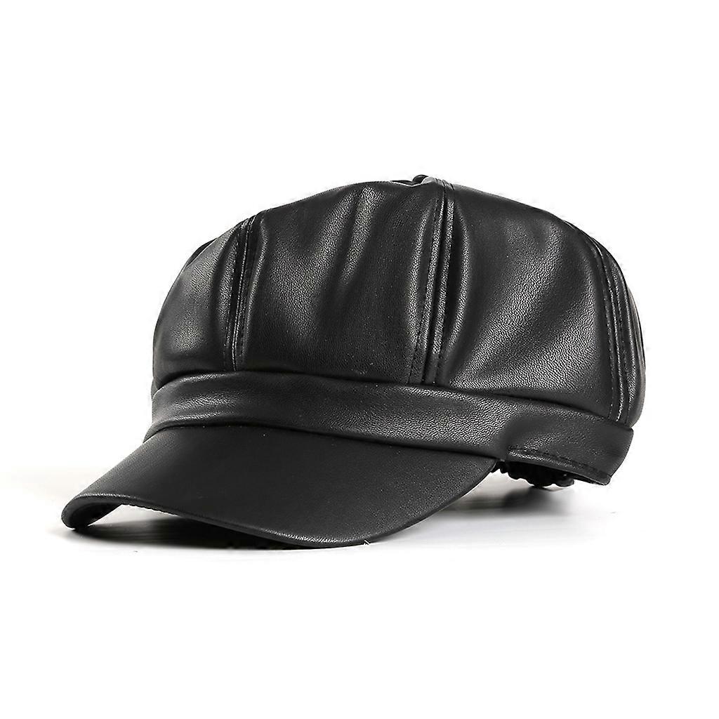 Women Men Faux Leather Newsboy Hats Glitter Solid Color Vintage London Style Cab Black