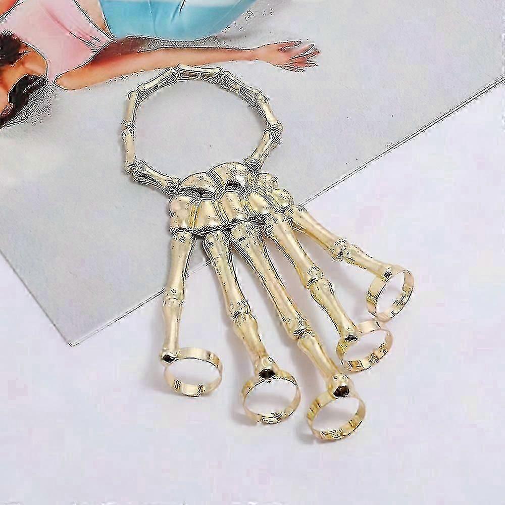 Horror Bone Punk Bracelet for Women Men Kids - Unique Gothic Jewelry for Prom Party (Gold)