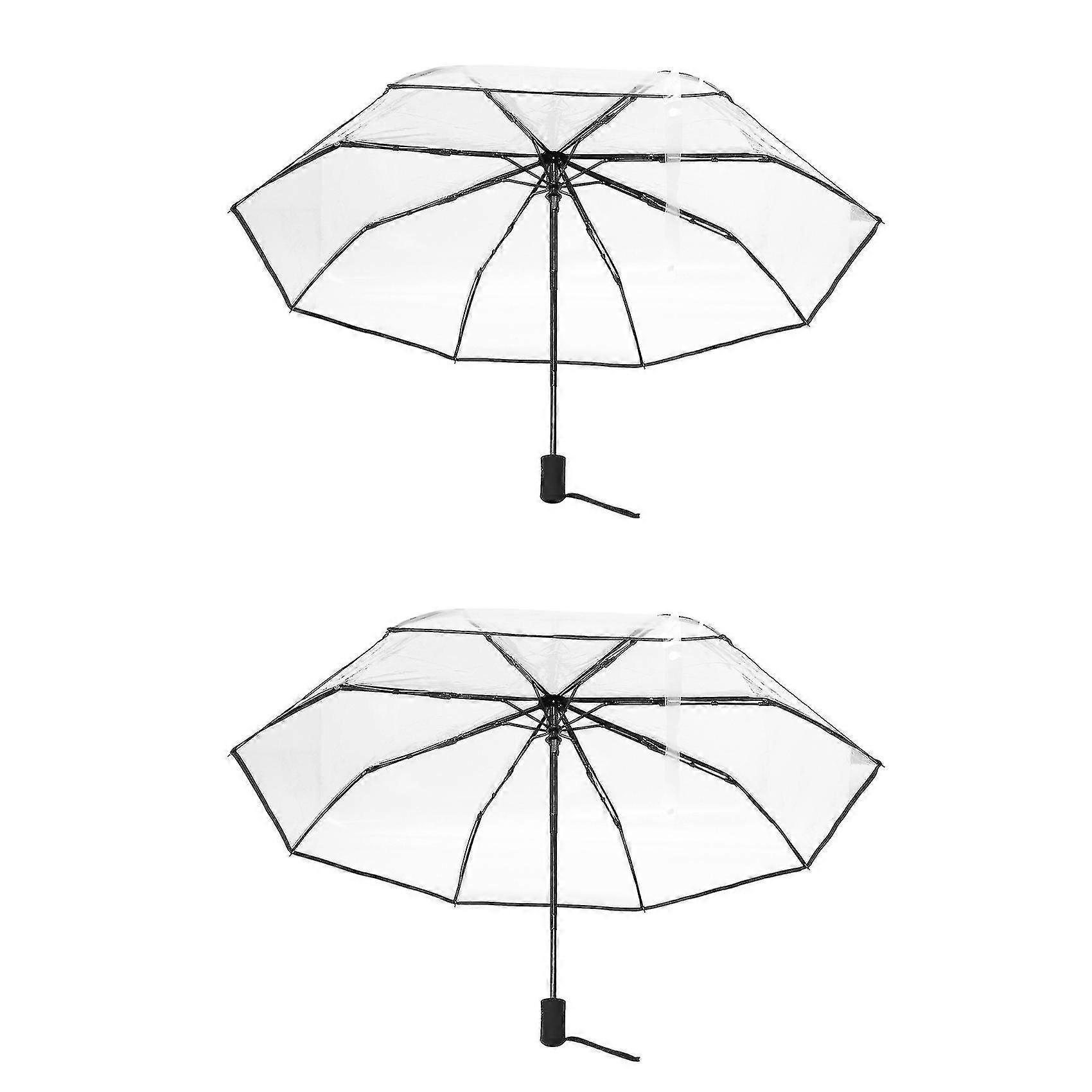2x Clear Auto Folding Umbrella for Women Men Compact Sun Rain Shield