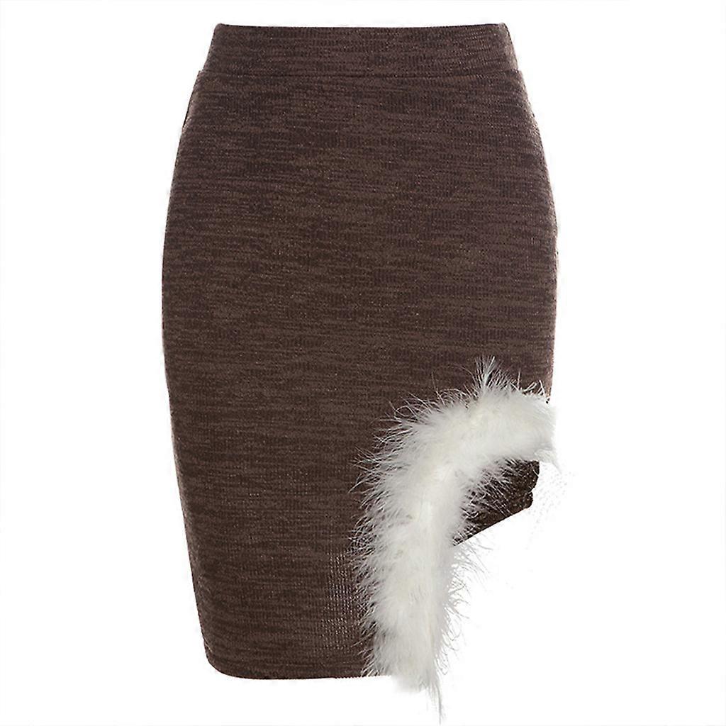 Women Autumn High Waist Sexy Asymmetric Split Furry Patchwork Bodycon Mini Skirt S