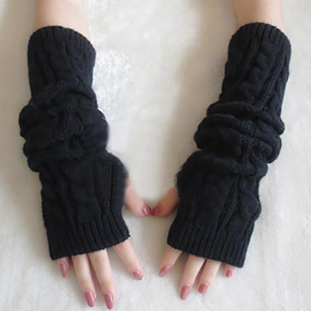 Women Arm Protection Extra Long Fingerless Solid Knitted Gloves Sleeves Stretchy Mittens