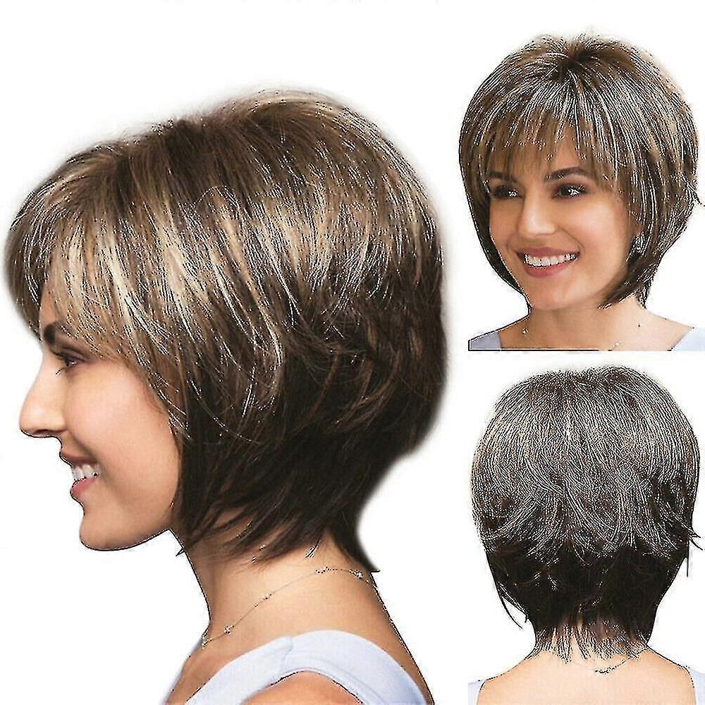 Womens Natural Real Wig Ladies Short Straight Hair Bob Wigs With Bangs Hairpiece