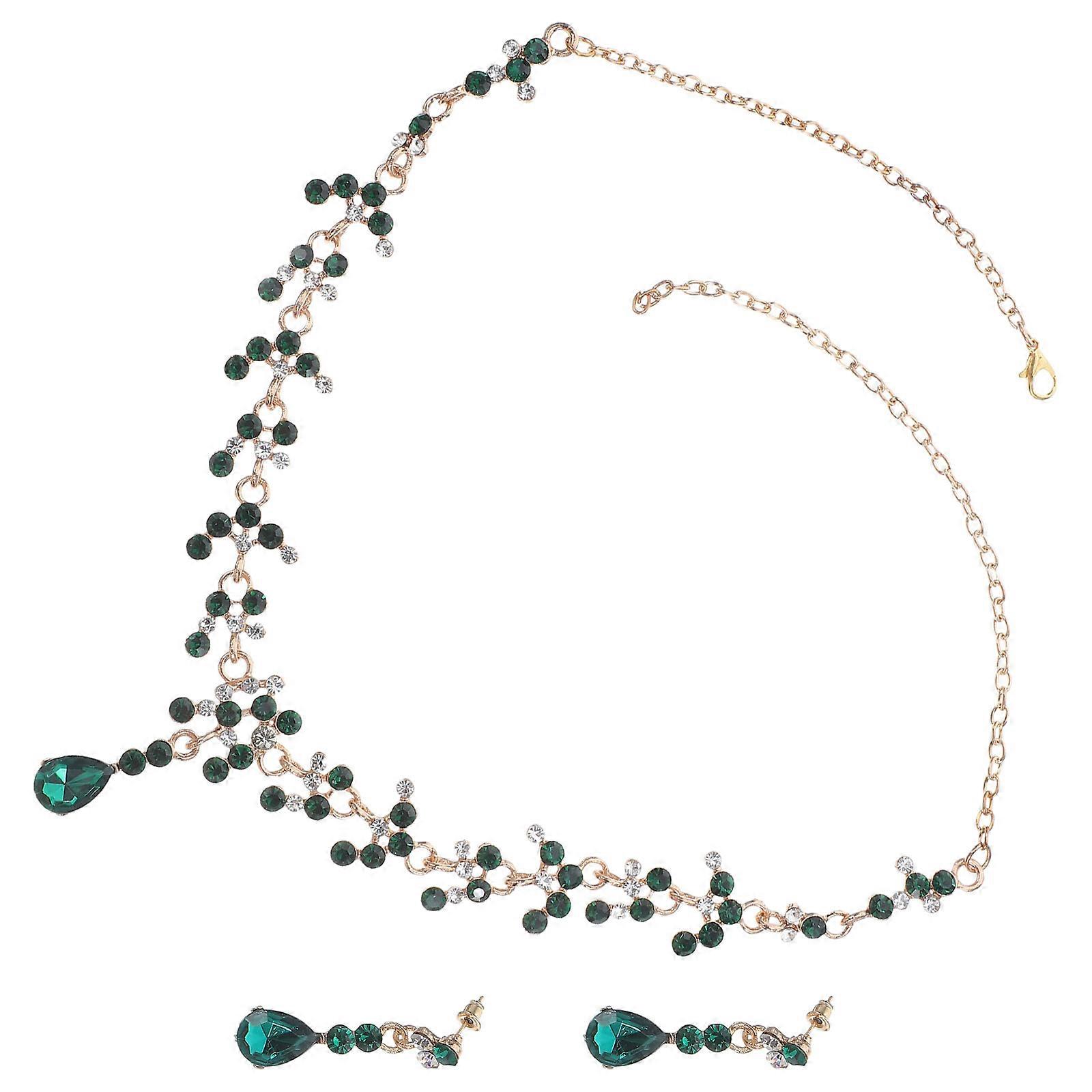 Women Bride Jewelry Set Necklace and Earrings for Wedding Green Accessories Jewelry Function 1Set