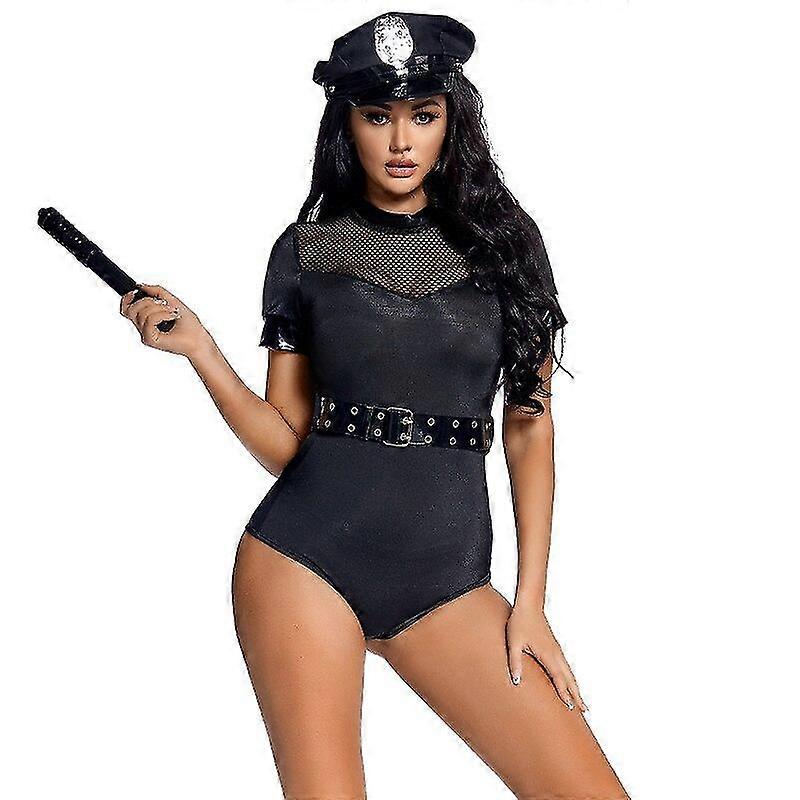 Women Sexy Lingerie Cop Police Costume Cosplay Uniform Romper Hollow Out Fantasia Halloween Party Club Costumes