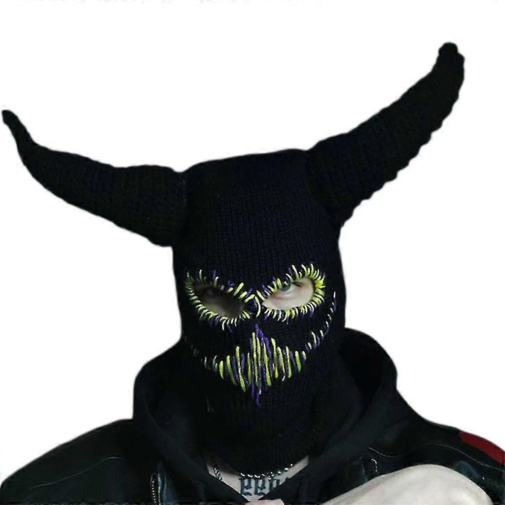 Women Knitted Caps With Devil Horns Halloween Horror Beanie Ski Mask For Men