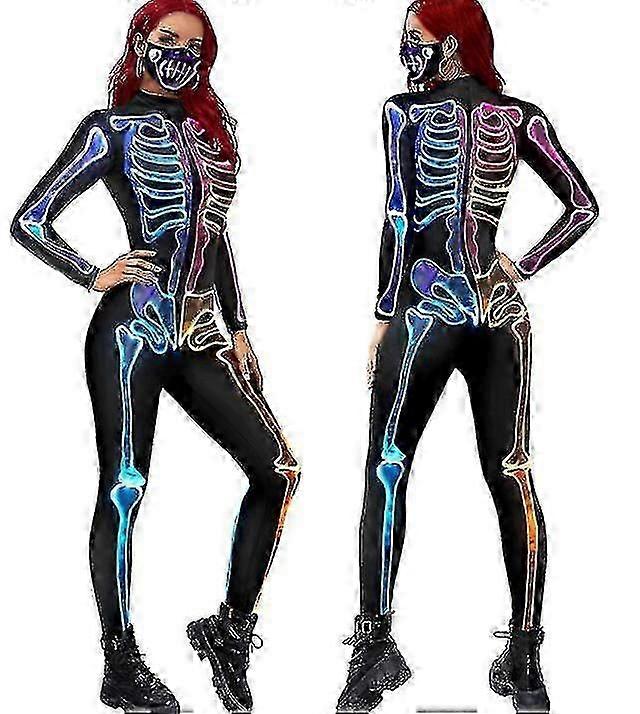 Womens 3d Skeleton Halloween Costumes Cosplay Jumpsuit Bodysuit