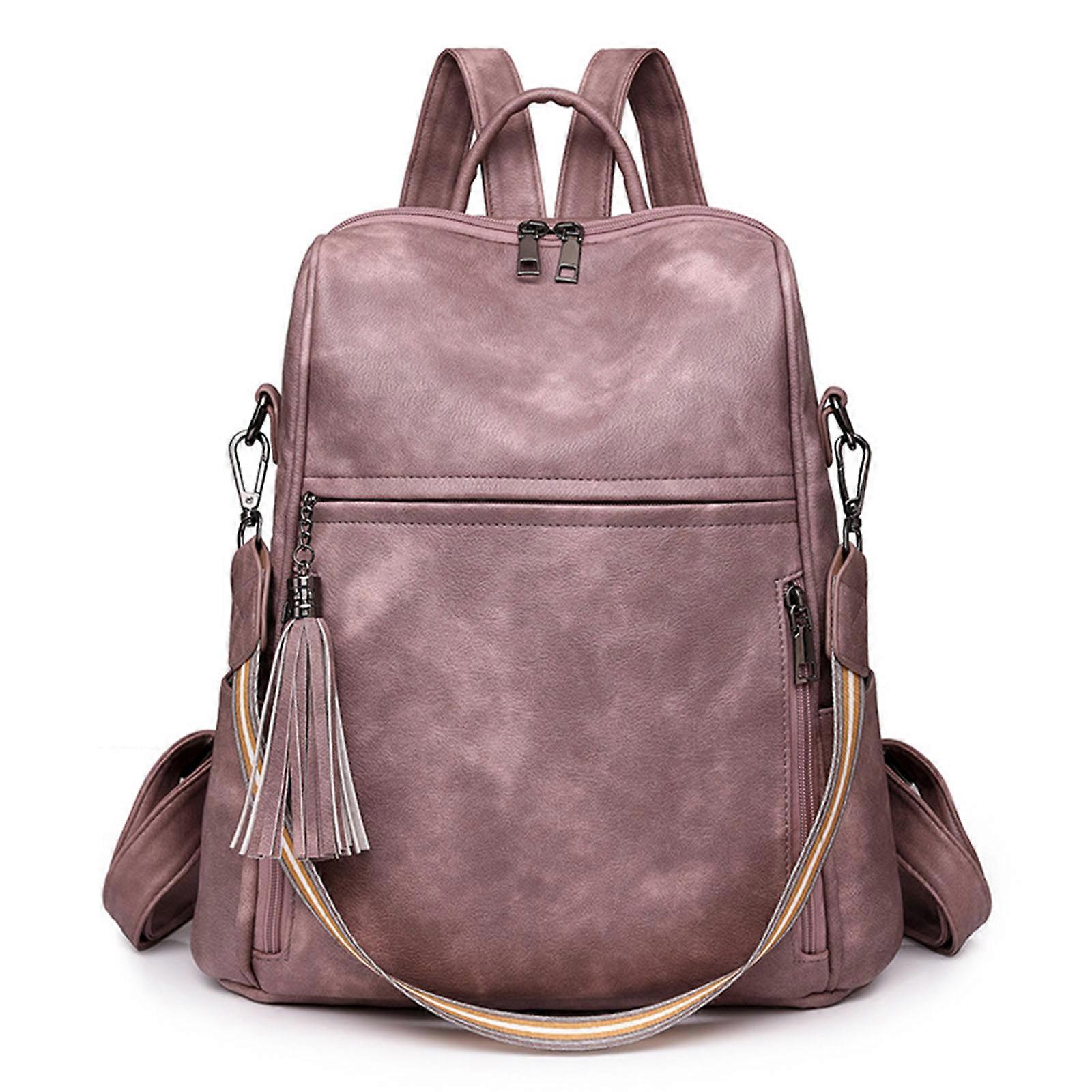 Women PU Leather Backpack Large Capacity Backpack City Backpack School Backpack Shoulder Crossbody Bag Travel Backpack Pink