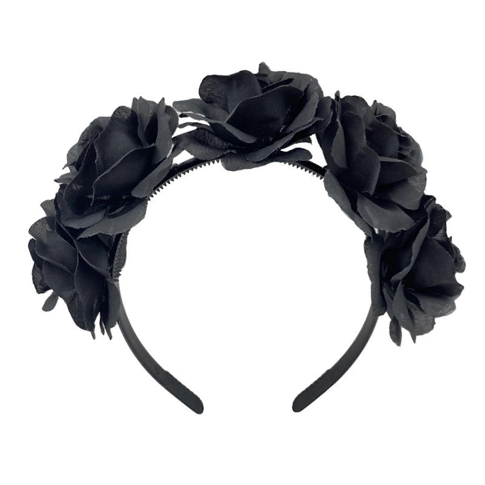 Fairy Flower Headband Costume Cosplay Accessories Devil Headdress with Black Rose Party Wear Gift for Boys Girls Black