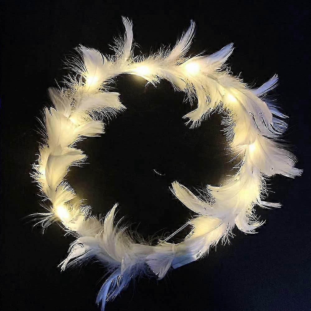 Fairy Wreath Women Hair Wear,vintage Photo Props Party Decorations Hair Ornament Glowing Feather Wreath Hair Accessories(b)