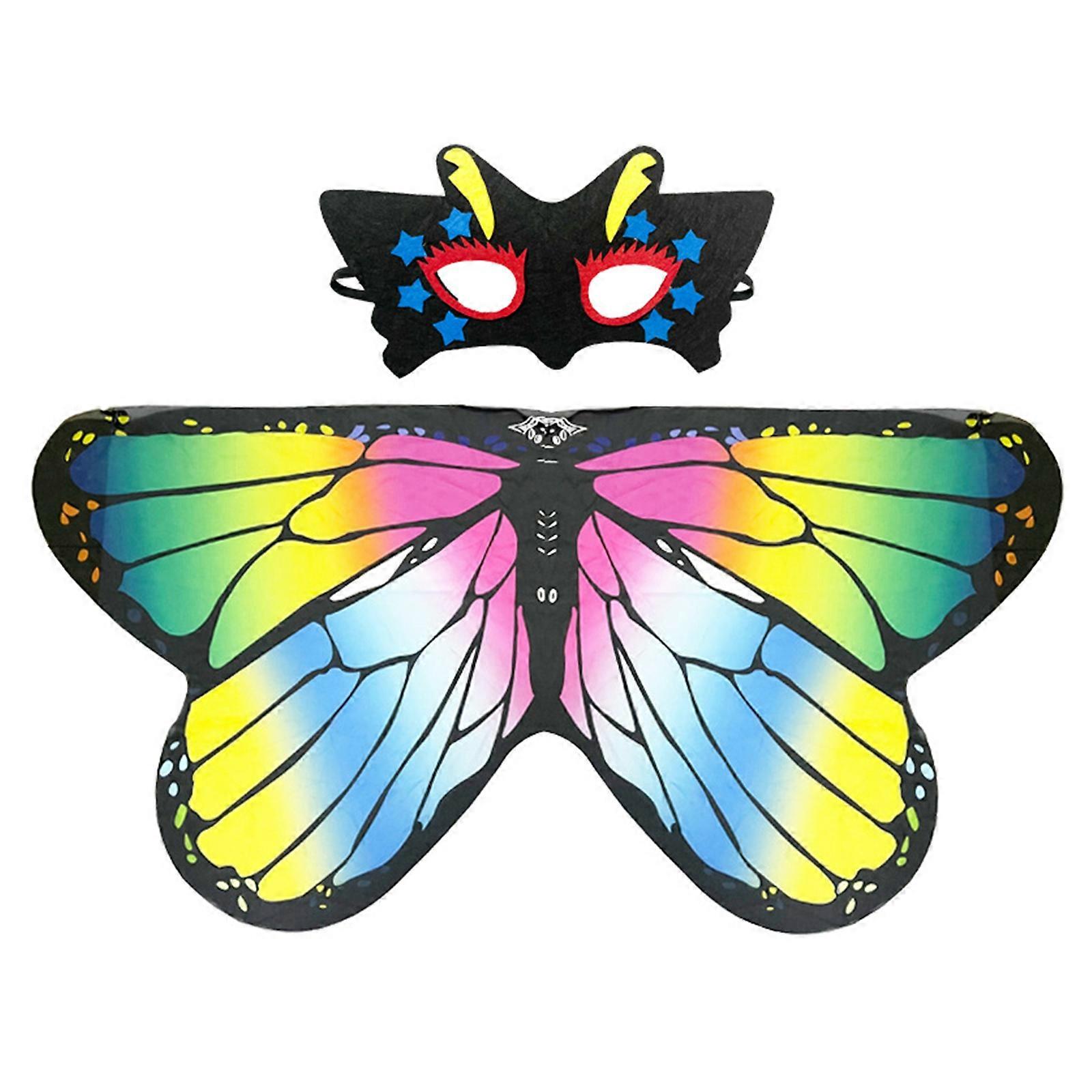 Fairy Butterflies Angel Wing Shawl with Eye Mask for Kids Party Fancy Dress Carnivals Costume Halloween Cosplay Prop Black