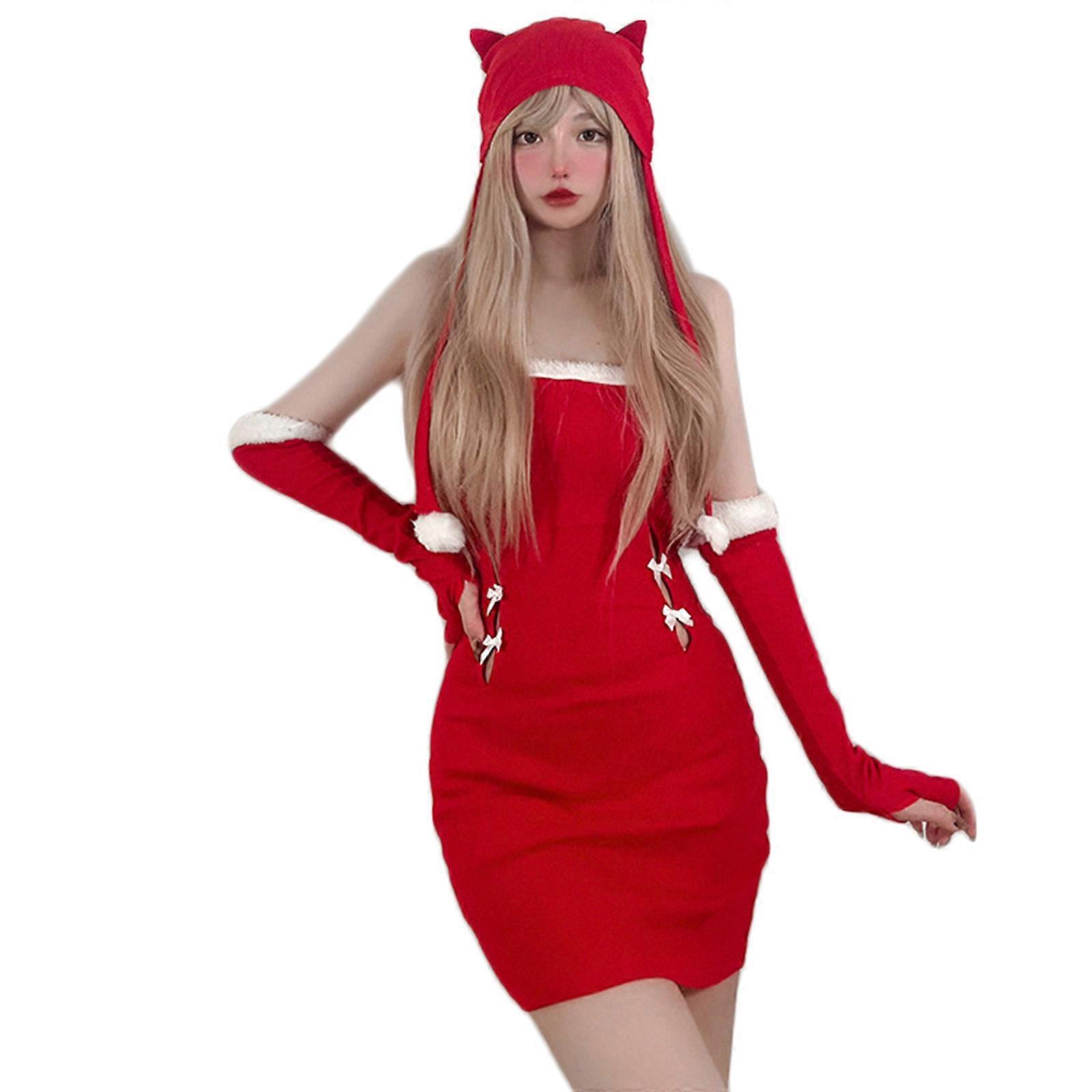Christmas Dress Hand Sleeve Cap Set for Wife Women Red Santa Babydoll Dresses Sexy Cosplay Costume Party Gift S