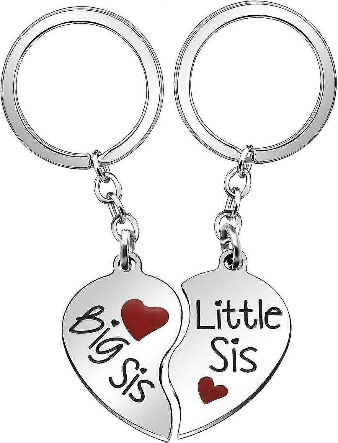 Sister gift keychain heart pendant Big Sis, Little Sis keychain with engraving birthday
