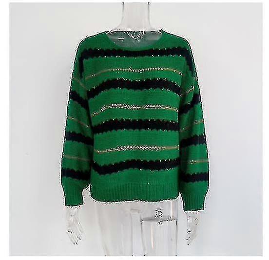 Women's Clothing 2022 Autumn And Winter Fashion Striped Long-sleeved Women's Round Neck Casual Loose Sweater Women's Knitted Sweater Top