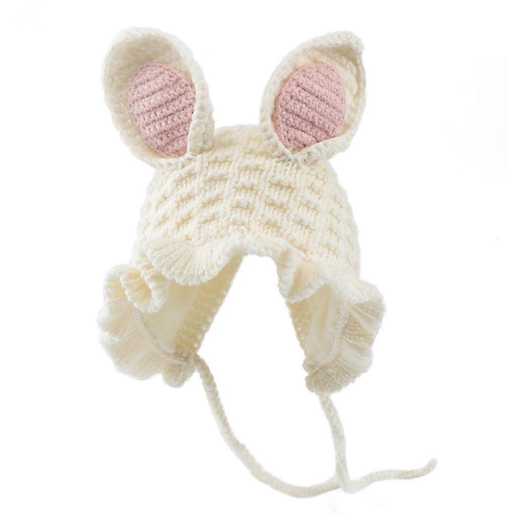 Children Big Rabbit Ears Plus Velvet Cute Knitted Hat Cute Sweet Knitted Personality Knitted Hat Fashion Autumn & Winter White