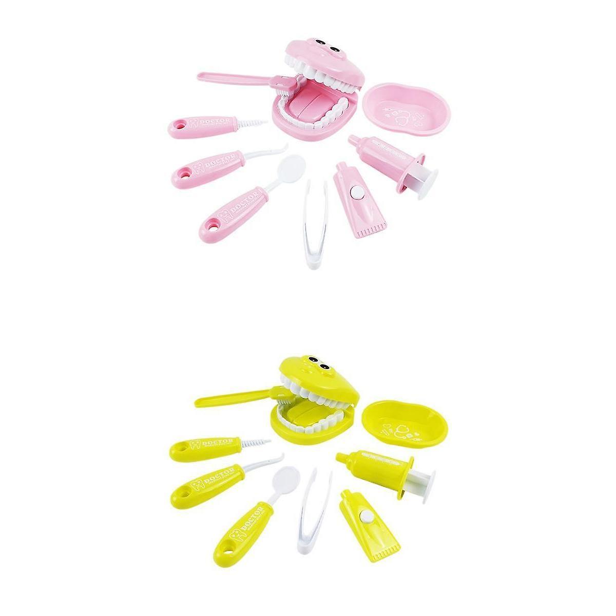 Children Kids Role Play Doctor Dentist Learning Toys Set Pink Yellow