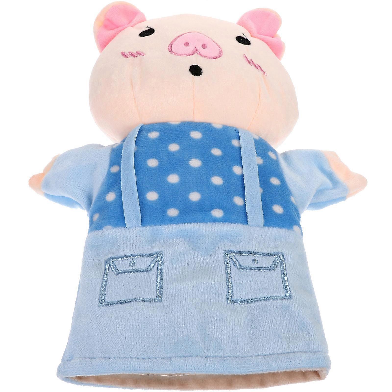 Cute Stuffed Hand Puppet Cartoon Pig Toy For Children And Adults 27X23X7CM Sky-Blue Imagination Activities 1Set