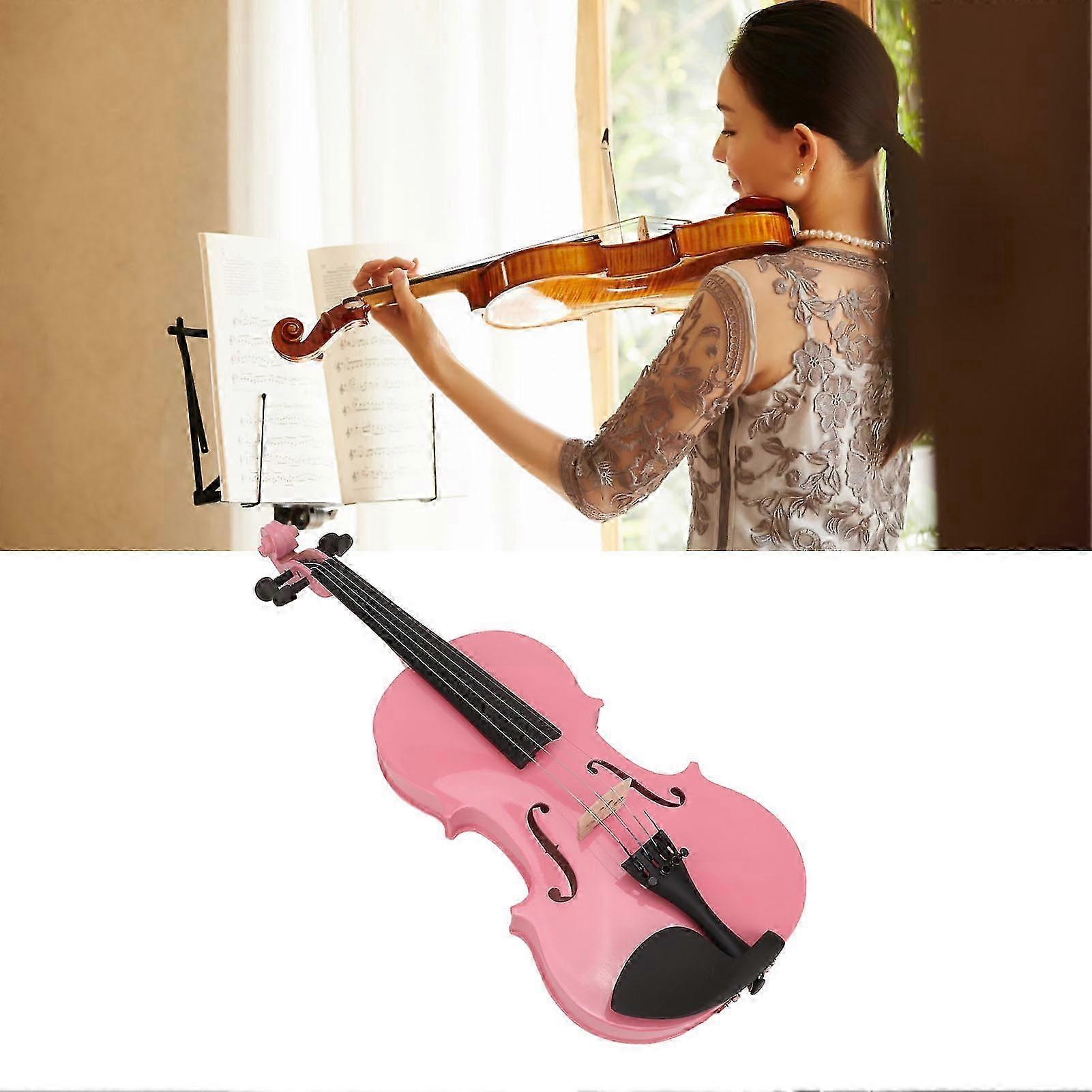 4/4 Acoustic Violin Starter Kit for Kids & Adults - Includes Box, Rosin, Shoulder Rest, Bow, String, Fingerboard Sticker, & Pink Finish