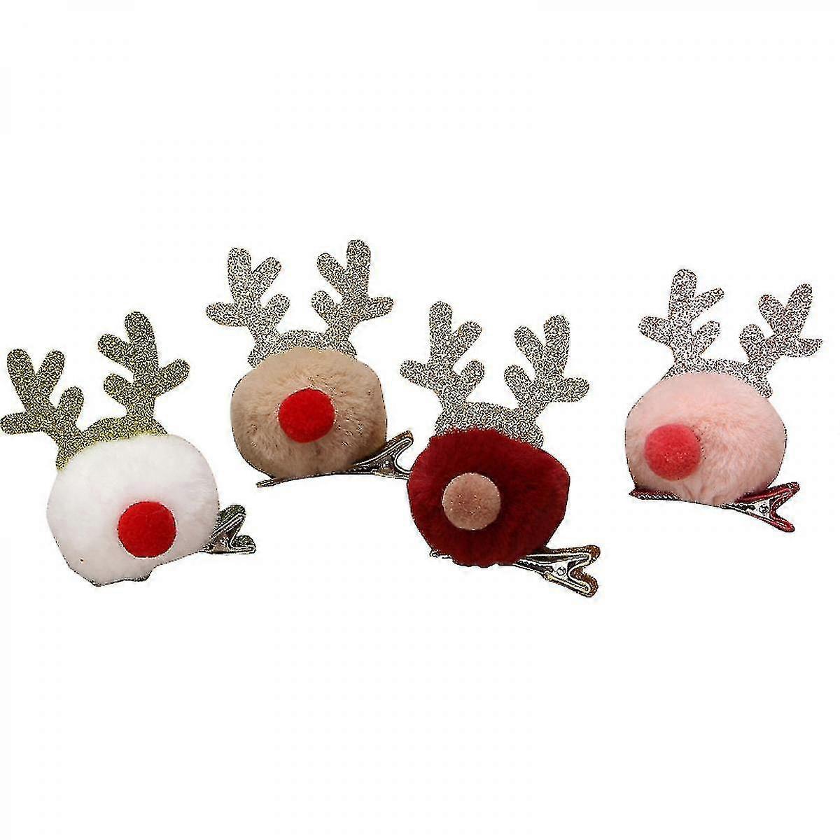 4pieces Of Christmas Antler Plush Hairpin Red For Child And Adult Cosplay Or Christmas Party Supplies O