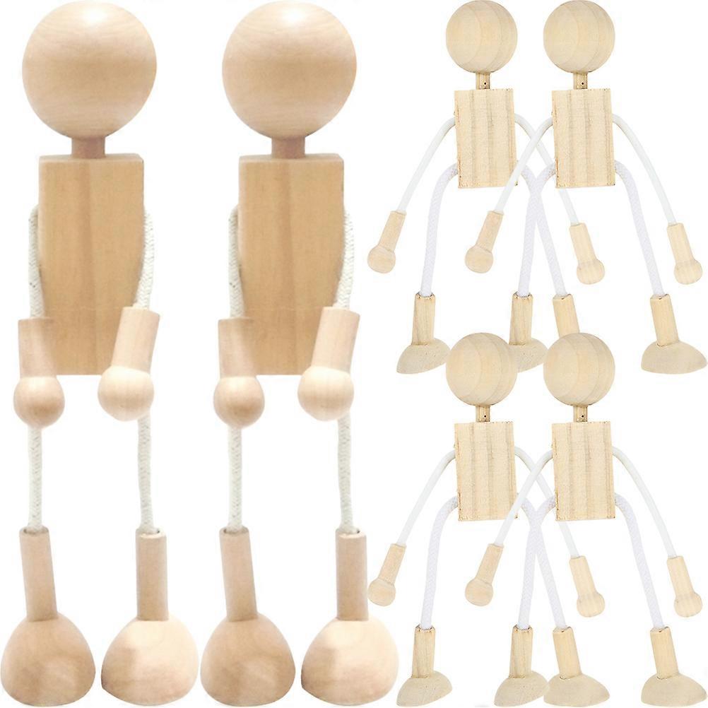 6Pcs Light Yellow Wooden Dolls For Painting Craft Suitable For Children DIY Activity Imagination Cultivation Mini Figures