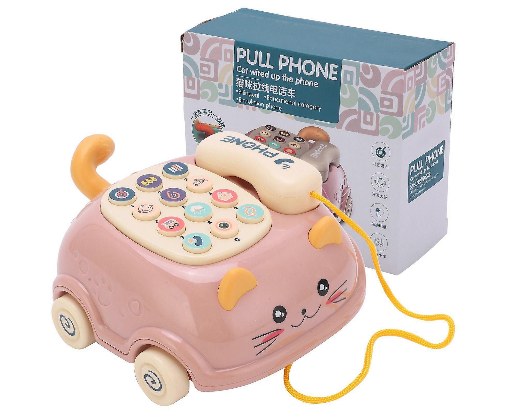 Kids Cute Mobile Phone Toy 16 Different Functions Children Simulation Cat Phone Carpink
