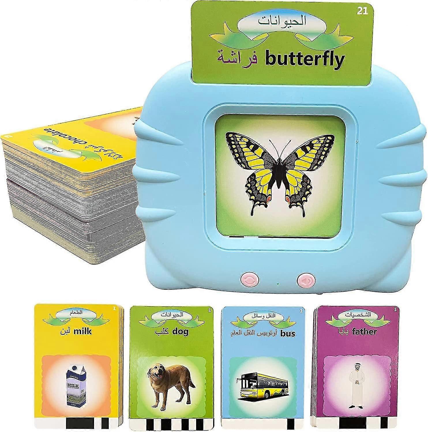 Bilingual Arabic-English flashcards for toddlers - Included 224 sight words, 112 double-sided flash cards, 16 themes. Your baby can learn different animals, vehicles, foods, fruits, colors, vegetables, daily nesessities, costumes, nature, persons, jobs and shapes. Allowing your child to build a basic Arabic vocabulary Easy and fun way to learn Arabic alphabet for beginners- Kids can play by inserting a card into the machine. The Arabic flash card reader with distinct standard pronunciation and colorful attractive design. Each word is accompanied by an illustration of the object being described. Provides hours of fun exploration and learning for your little one. With interactive mode, let your child to learn while being entertained Who will find this classic Arabic children's book helpful - This Arabic Books for Kids has been designed for Arabic-speaking parents (or of Arab descent) residing in English-speaking countries who want to introduce their little ones to their mother tongue. It is also great for any adult who wishes to learn Arabic, starting with the basics Safety & light - Constructed of Non-BPA, high-quality ABS plastics to uphold the highest standard of health safety. Rounded edges and soft design curves to eliminate potential injuries. Simple function keys are more easy for kids to operate. USB charger will be more convenience and safer for kids instead of batterers. Light weight portable size, your child can play it anywhere anytime as on the go long car rides travel toy The perfect gift for Arabic -English bilingual families - This learning Arabic toy is a great gift for birthday, Christmas and other holidays for girls and boys ages 3 4 5 6 years old. Parents can play with their children and enjoy a happy parent-child time
