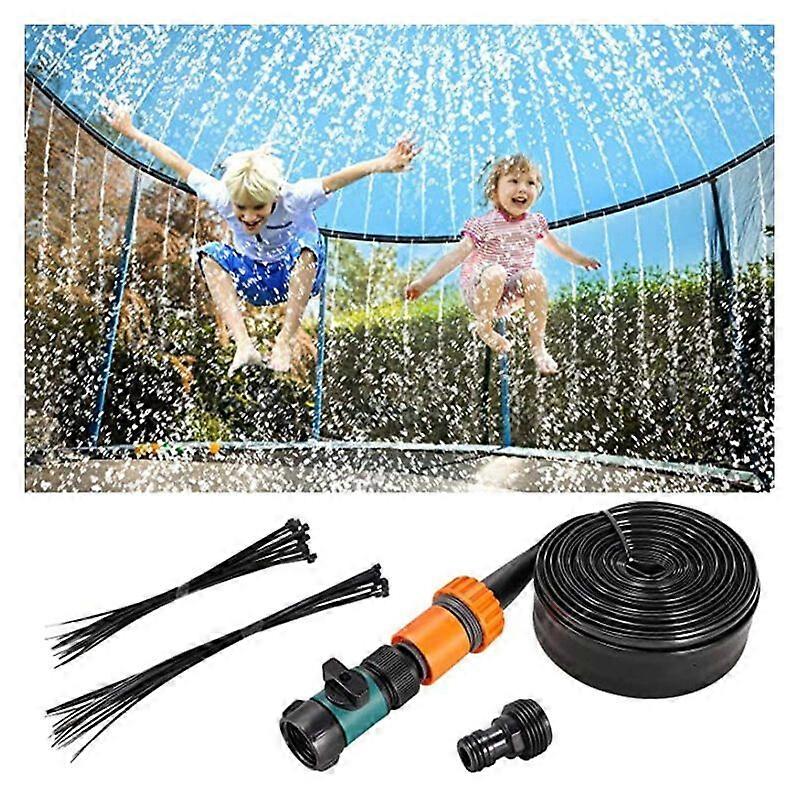 Summer fun games: Our trampoline sprinklers are 49 feet long to surround the entire trampoline and then spray mist water on it, which can achieve an immediate cooling effect. It is a perfect water play area for children. It can not only cool down but also play. It is very suitable for children to calm down in summer Fun summer games: our trampoline sprinklers are 49 feet long to surround the entire trampoline and then spray mist water on it , which can achieve an immediate cooling effect. It is a perfect water play area for children. It can not only cool down but also play. It is very suitable for children to calm down in summer Easy to Install: Simply connect the faucet to the trampoline net with a clip, then connect the faucet to the trampoline sprinkler valve with a hose, and it is ready to use. The installation is very simple and it can be easily put in place. Safe And Durable: Our trampoline sprinkler is made of new environmentally friendly PE material, 15 meters long, thicker than other ordinary water pipes and not easily damaged, it is a safe and non-toxic material, and children can use it with confidence. Wide Range of Uses: Our sprinklers can be used not only as trampoline sprinklers, but also as outdoor cooling, lawn sprinklers, garden watering, pool parties, family entertainment, pastures, etc., and they are very practical.