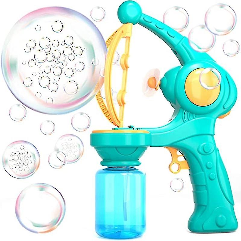 Children's Bubble Machine Gun - Compared with other ordinary children's bubble machine guns, our bubble machine gun can not only produce more than 3000 bubbles per minute, but also blow long-lasting large bubbles and countless small bubbles at the same time. At the same time, small bubbles will be wrapped in big bubbles and fly into the sky together. This visual effect will drive children crazy. The Toddler Bubble Gun requires 3 AA batteries to start working, not included. Handheld and cool fan mode - The size of our bubble machine gun is 9.7*6.5 inches, with a handheld handle, your child can use our bubble machine gun to create a lot of big bubbles while running, when the bubbles are full When playing in the sky, colorful big bubbles can attract children's attention and bring more joy. In addition, the children's bubble gun can also be used as a small fan to bring cool and comfortable wind when your child is tired of chasing. Easy to operate - Compared with other bubble machine guns that need to be immersed in water to bubble liquid or blow bubbles manually, our bubble gun for toddlers is more convenient to operate, you don't need to immerse and blow bubbles, we provide you with a 100ml liquid bottle (No foaming liquid included), you can pour the foaming liquid into the bottle, install the battery and turn on the switch to produce a large number of large bubbles. Safety first - The toddler bubble machine gun is made of non-toxic ABS material, BPA-free, and the fan blades are made of soft sponge material, which is very safe and specially designed for children. Perfect for summer parties, picnics, pools, showers, beaches, outings, birthdays, weddings and other scenarios. How to make bubble liquid - To make bubble liquid, just add dish soap and water to the bottle in a ratio of 1:5, stir evenly, and let it sit until the bubbles disappear.