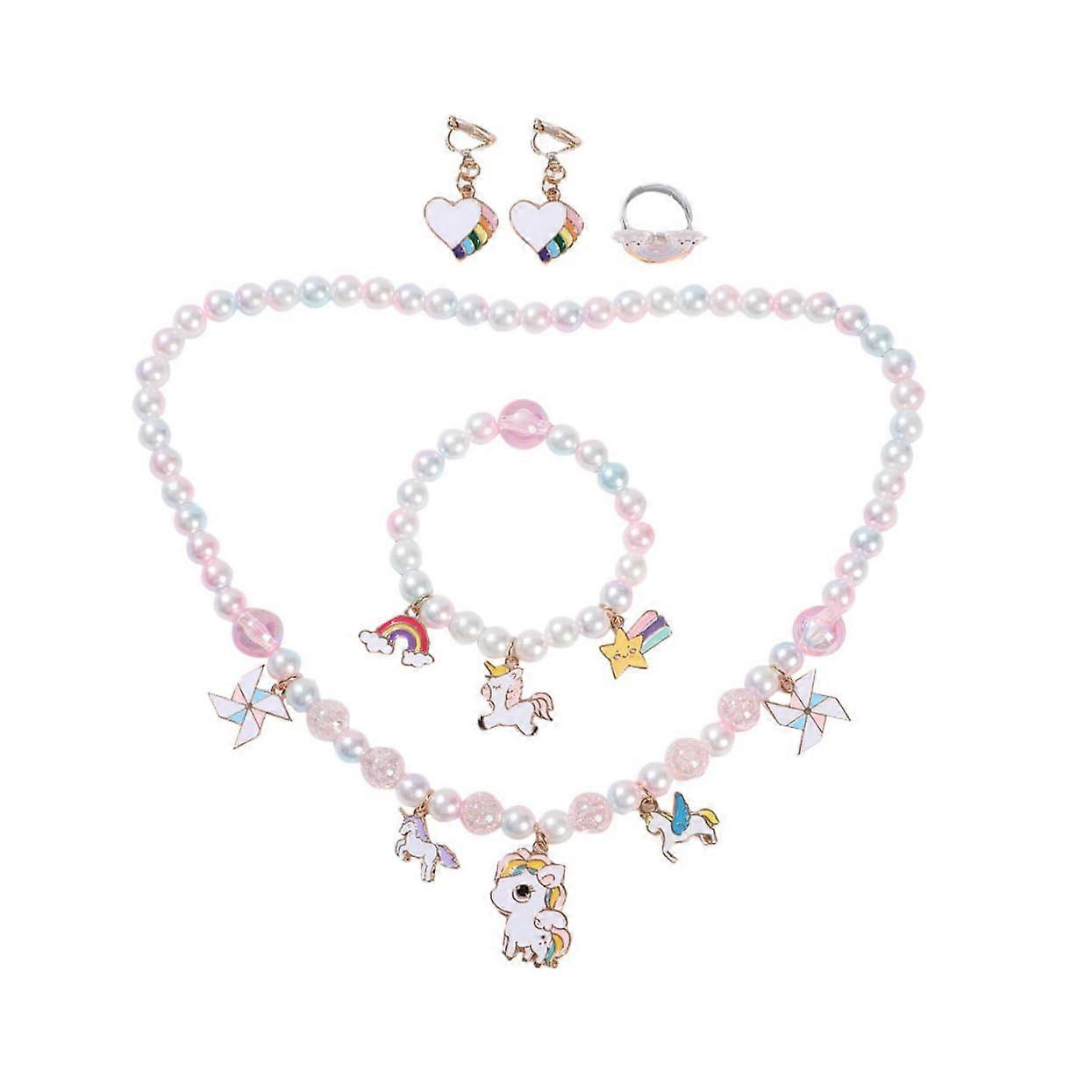 Pearl Necklace and Bracelet Set for Kids, Decorative Jewelry for Little Girls, Stylish Party and Wedding Accessories