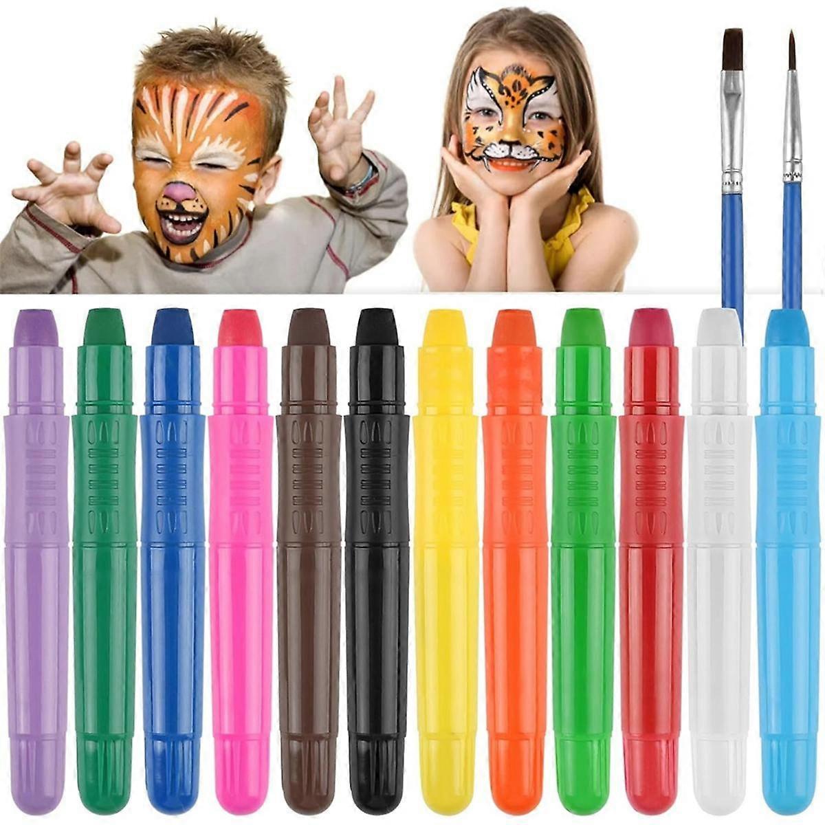 Face Painting Kit for Kids,12 Colors Washable Twistable Face Paint Crayons with 2 Brushes for Halloween Cosplay