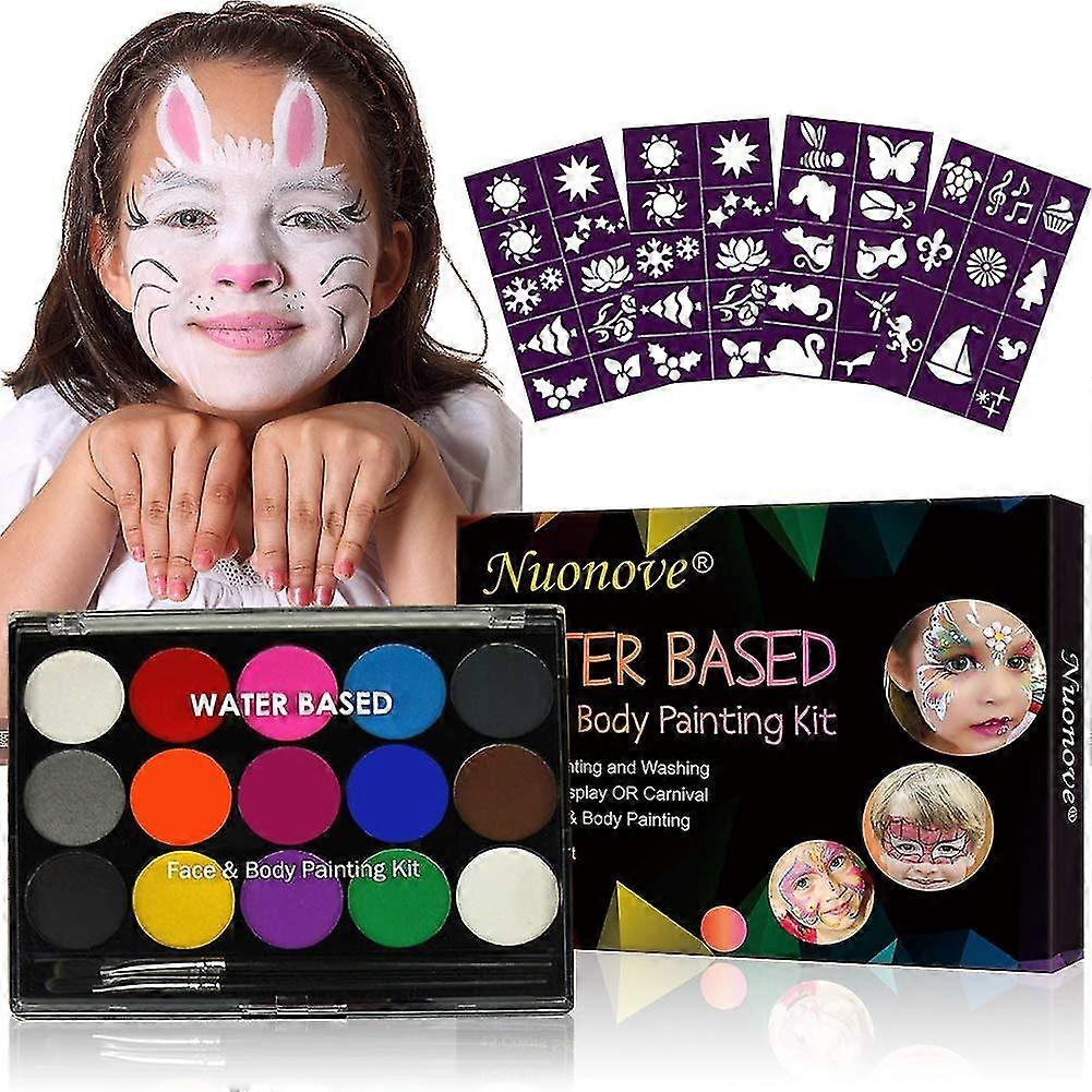 Face Paint Kit For Kids, Face Paints, Face And Body Painting, With 2 Professional Brushes, 15 Colors, 40 Tattoo Templates new