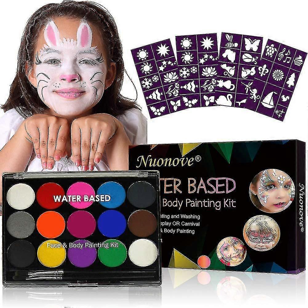 Face Paint Kit For Kids, Face Paints, Face And Body Painting, With 2 Professional Brushes, 15 Colors, 40 Tattoo Templates