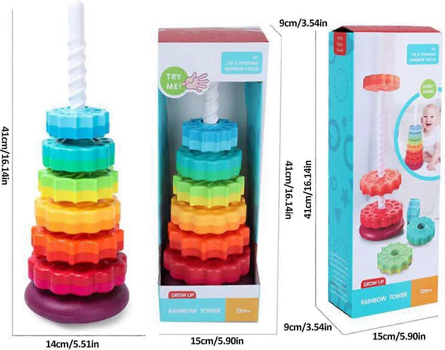 Great Gift: Rainbow Spinning Wheel Toy Suitable for boys and girls, stacking toys are great Christmas, Thanksgiving, or birthday gifts for your daughter, son, or grandkid. They can play with the stacker kid toy on their own or with their siblings and friends
