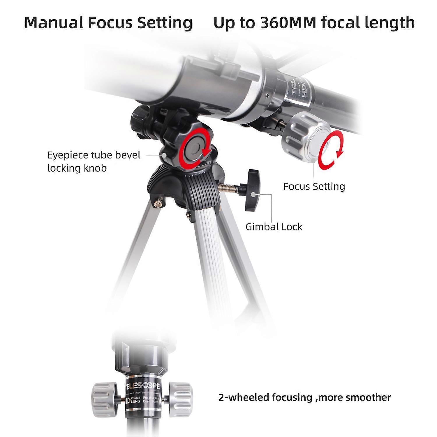 Telescopes for Kids Adults Beginners 50mm Alloy Aperture Astronomical Refractor Telescope 100mm Obje