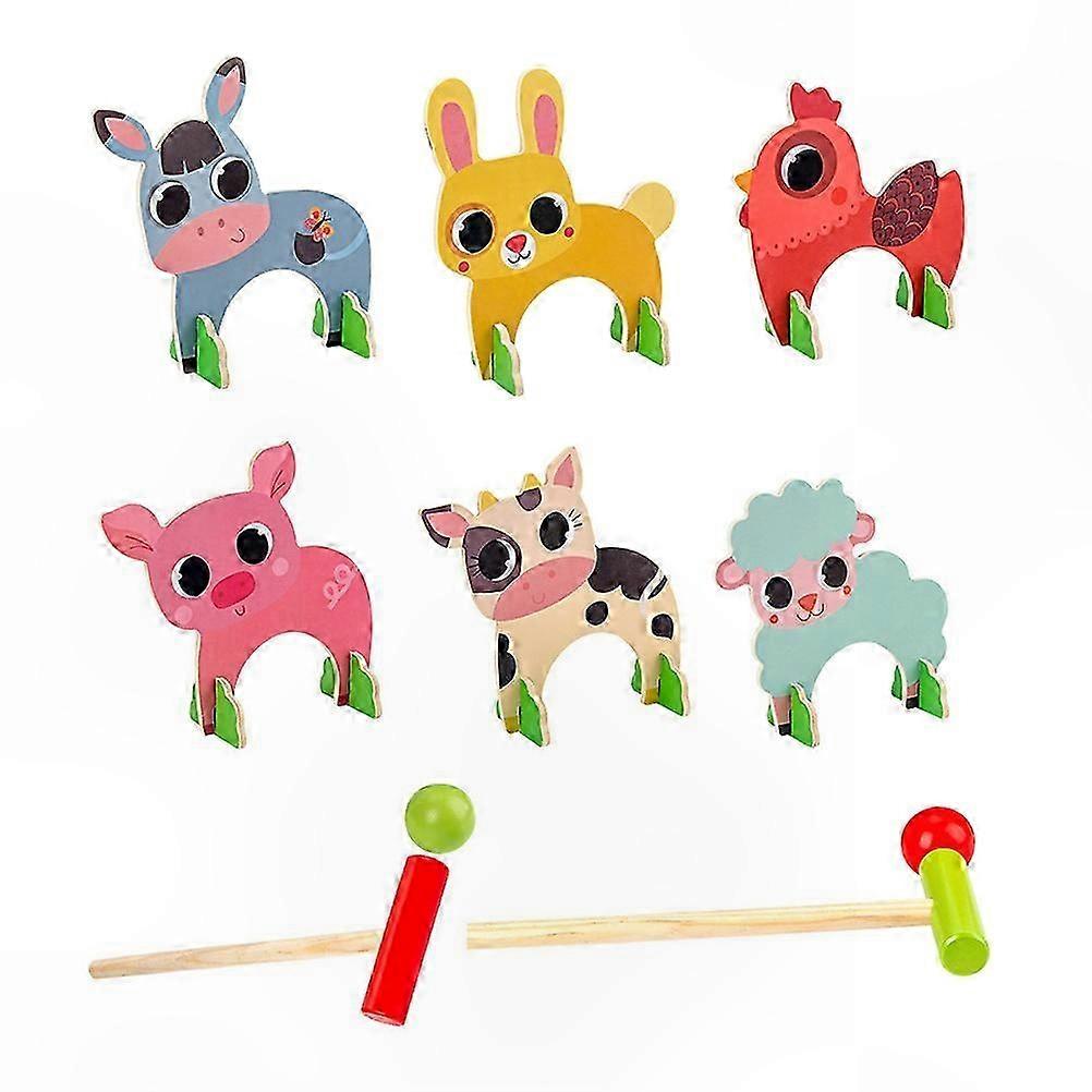 Wanna train children's hand-eye coordination ability? Choose this educational toy. Made of high-quality wood, safe and non-irritating to the skin. This set includes six wickets with different cartoon animal shapes, two wooden hammers, and two balls. A great gift for kids that adds fun and engagement. Features - Color: As shown - Material: Wood - Size: 15.00 x 13.00 x 4.00 cm / 5.89 x 5.11 x 1.57 in - The croquet toy is designed with a reasonable size, suitable for small hands. Large pieces help prevent accidental swallowing. - Encourages careful observation, shape recognition, and fine motor skills through matching activities, supporting hand-eye coordination development. - Ideal for interactive play, helping children enjoy games with friends and family. - Features colorful, child-friendly cartoon animals that aid in animal recognition and sensory development. - A thoughtful gift to support children's developmental growth. Package list: 6 x Animal Wickets 2 x Wooden Hammers 2 x Balls