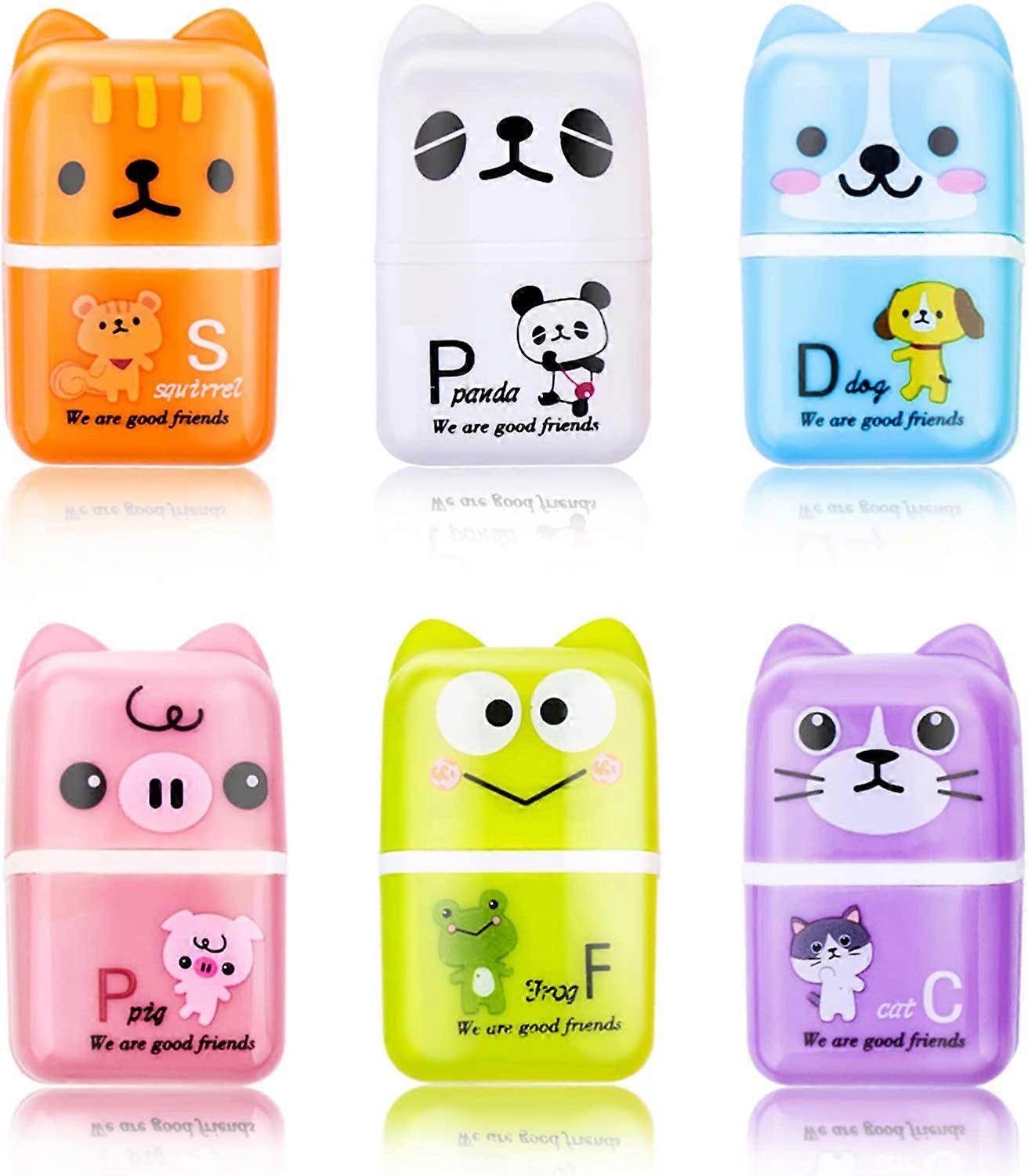XIANQI 6PCS Cute Cartoon EraserYou will receive 6 animal shape cute pencil erasers of different colors, 1 each of pink, orange, green, blue, purple, and white, each cube eraser with a different animal print. The approximate dimensions of each are 5 x 3 x 1.7 cm/1.96 x 1.18 x 0.67in. Enough for you to use for a long time and share with classmates and friends.