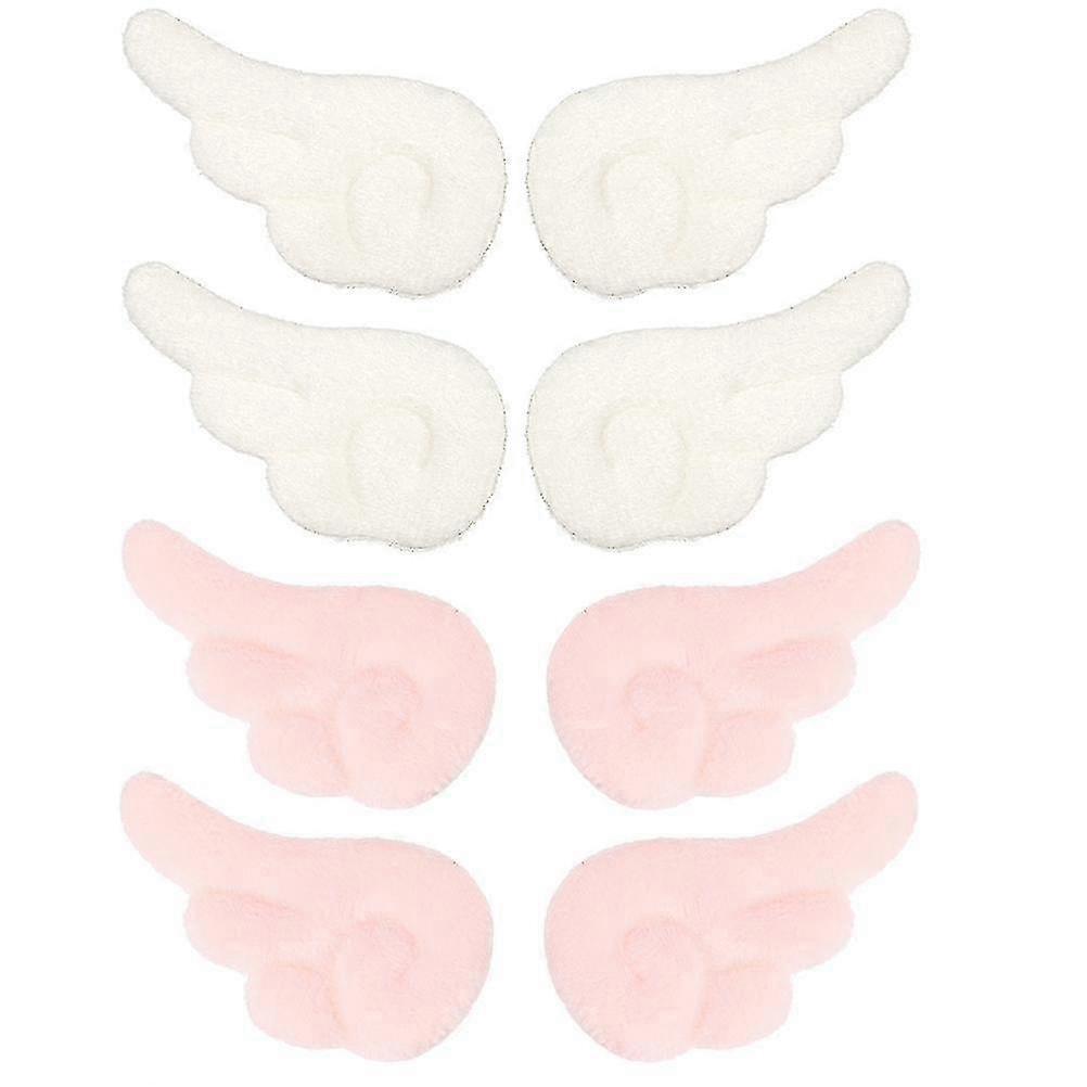 Lovely Plush Angel Wing Hair Clips for Children - 4 Pairs of Adorable White & Pink Headdress Accessories