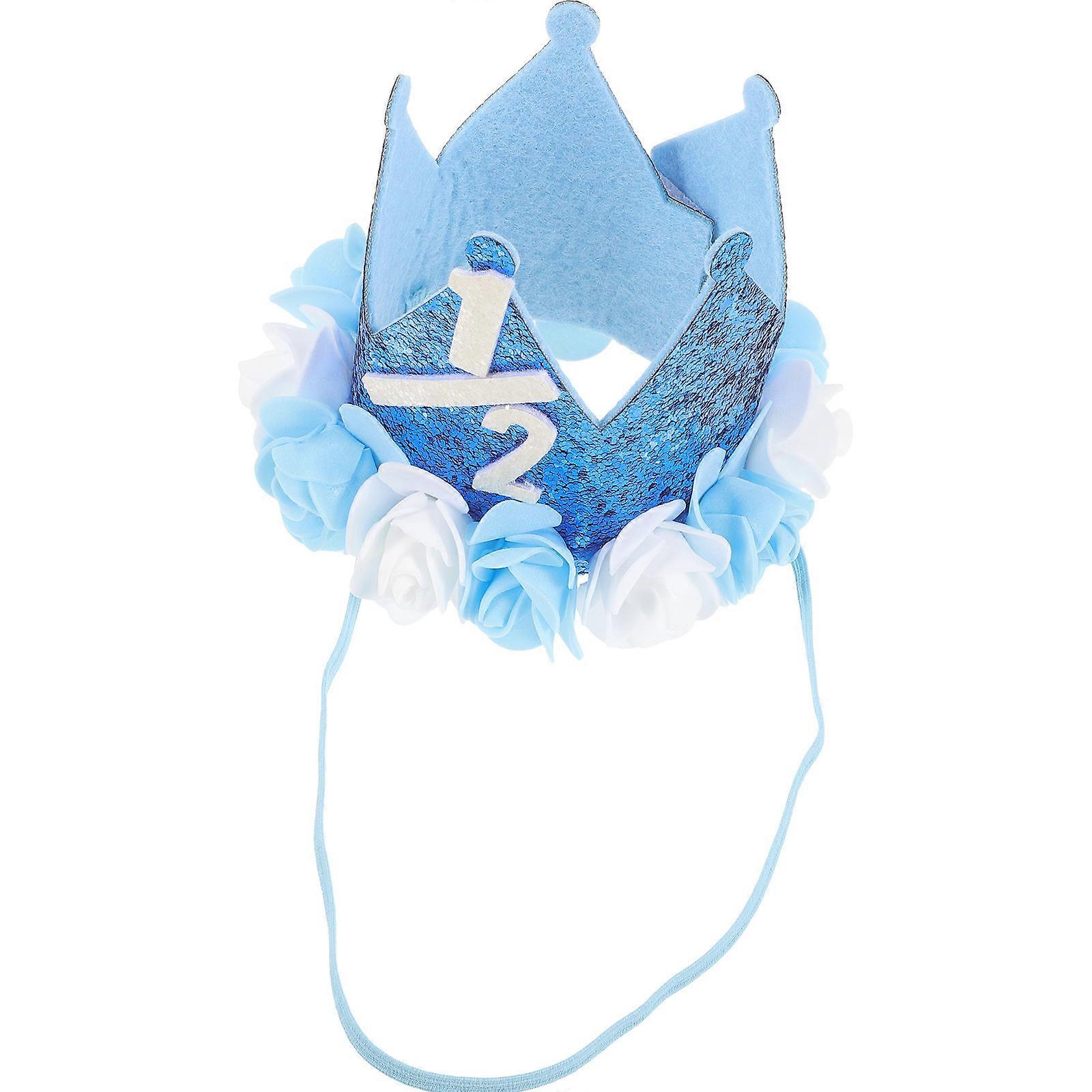 Birthday Hat For Kid Hats for Kids Crown Hat Cap Half Birthday Crown Hat Photo Prop Blue 12.5x8.5CM 1Pcs