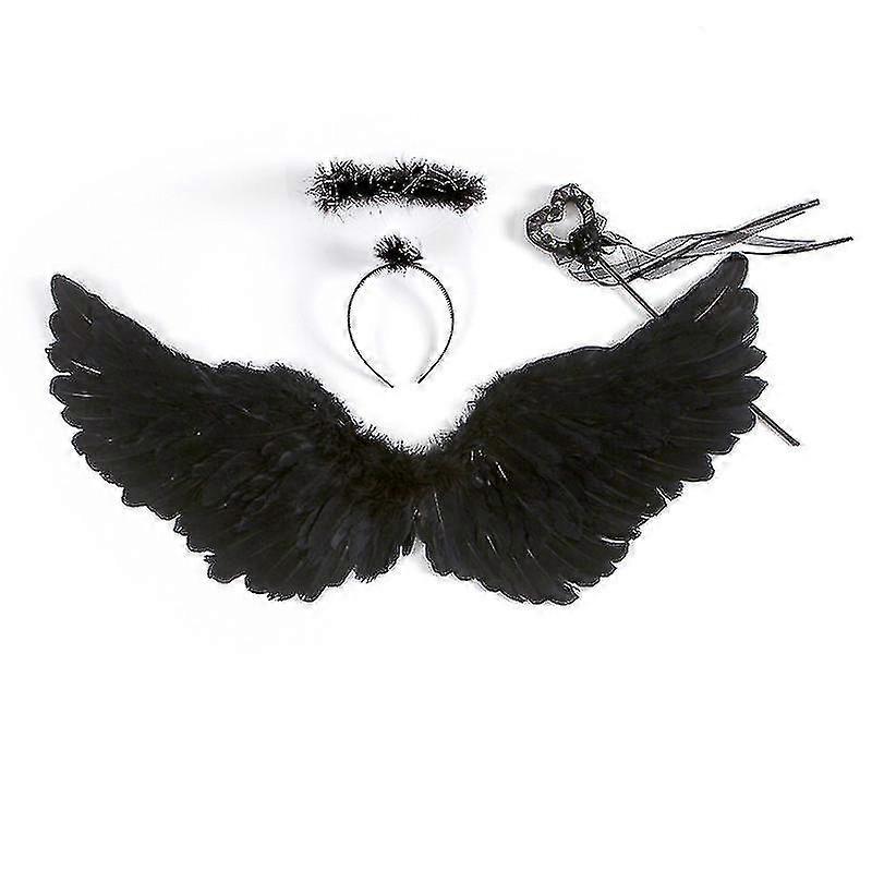 Black Angel Wings And Halo And Fairy Wand For Kids Angel Costume Adult For Halloween, Christmas Eve