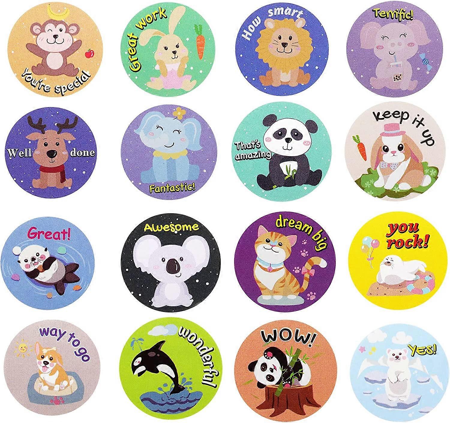 1000 pcs Animal Stickers for Kids,Cute Motivational Stickers for Kids Teachers Classroom School,16 Designs Reward Sticker (1 Inch / 2 Rolls)