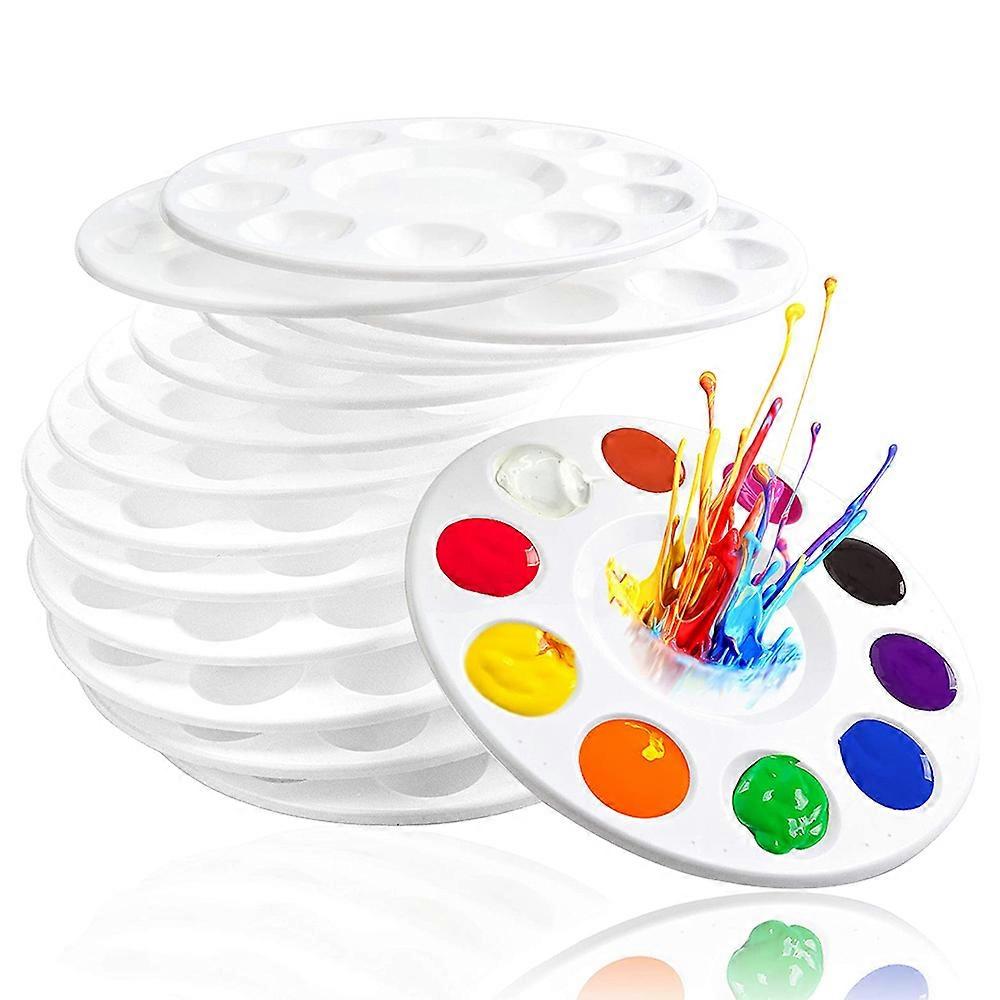 1.【Plastic Palettes】: Paint tray made of molded white premium plastic which is sanitary,sturdy and durable. 2.【Toddler Painting Palettes】: The round plastic palettes with 10 wells and 1 central reservoir, for holding pigments separately or in mixture; raised brush holders on the rim is designed to lay a brush on from any angle. 3.【Multiple Uses】:Ideal for kids, craftsman, amateur and professional painter. Also suitable for school art projects, to be the decorating cupcake palettes in the home or school party or decorate the crafts. Widely used in party, workshop, art classes or lessons,it is ideal for a gift to the children or students. 4.【Easy to Carry & Storage】: These painting palettes is small and lightweight enough, but not thin plastic, easily stacked together and convenient to storage, save space. 5.Unique 12 - piece Round Palette Set: With a perfectly round shape and a set of 12 palettes, it offers a spacious and organized mixing area for artists. The circular design not only provides a smooth blending surface but also makes it easy to access colors from all angles. Ideal for both professional painters and hobbyists to explore a wide range of color combinations in their creative projects.