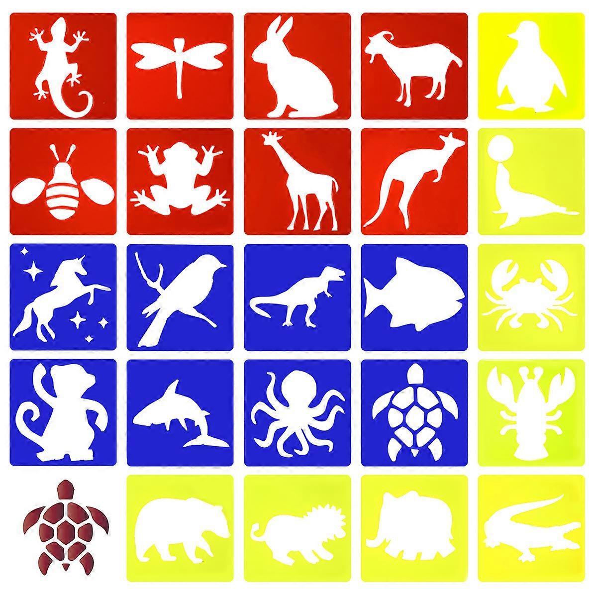 Set of 24 Animal Stencils for Kids, Reusable, 20x20cm